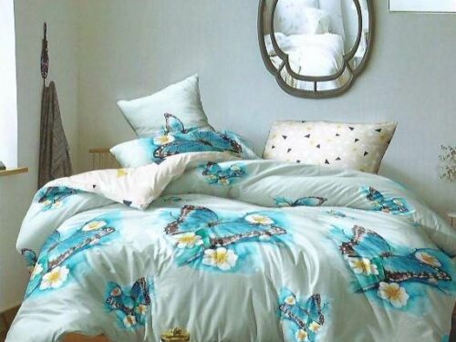 Dwie poszewki na poduszki 70×80 cm Poszwę na kołdrę 140×200 cm Prześcieradło 160×200 cm ( Bez Gumki) Pościel dwustronna -