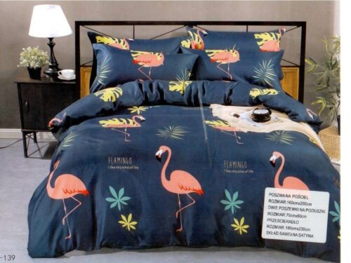 Dwie poszewki na poduszki 70×80 cm Poszwę na kołdrę 160×200 cm Prześcieradło 180×230 cm ( Bez Gumki) Pościel dwustronna