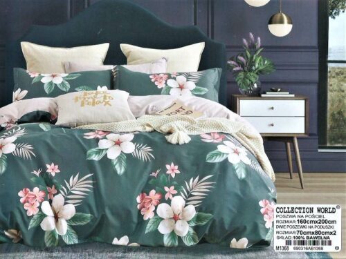 Dwie poszewki na poduszki 70×80 cm Poszwę na kołdrę 160×200 cm Prześcieradło 180×230 cm ( Bez Gumki) Pościel dwustronna -