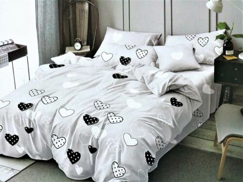 Dwie poszewki na poduszki 70×80 cm Poszwę na kołdrę 180×200 cm Prześcieradło 200×230 cm ( Bez Gumki) Pościel dwustronna