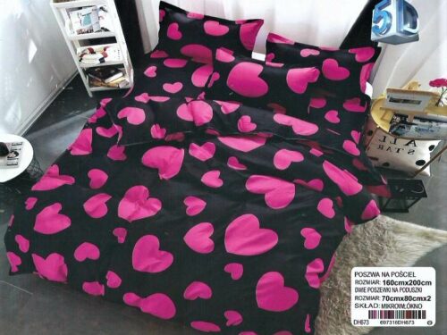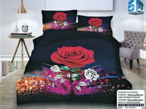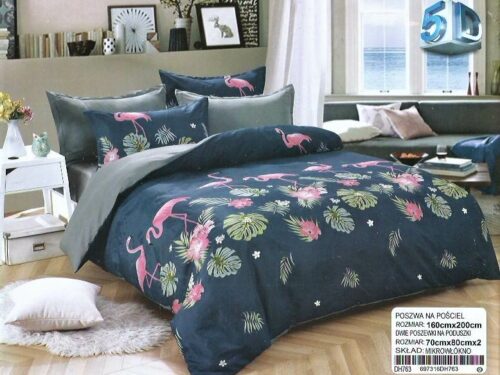 Dwie poszewki na poduszki 70×80 cm Poszwę na kołdrę 160×200 cm Prześcieradło 180×230 cm ( Bez Gumki) Pościel dwustronna -