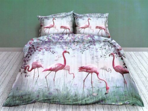 Komplet pościeli Bawełnianej 160x200 cm ze wzorem w Różowe Flamingi.