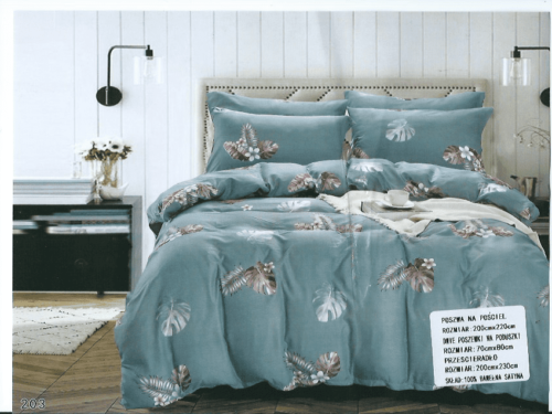 Dwie poszewki na poduszki 70×80 cm Poszwę na kołdrę 160×200 cm Prześcieradło 180×230 cm ( Bez Gumki) Pościel dwustronna -